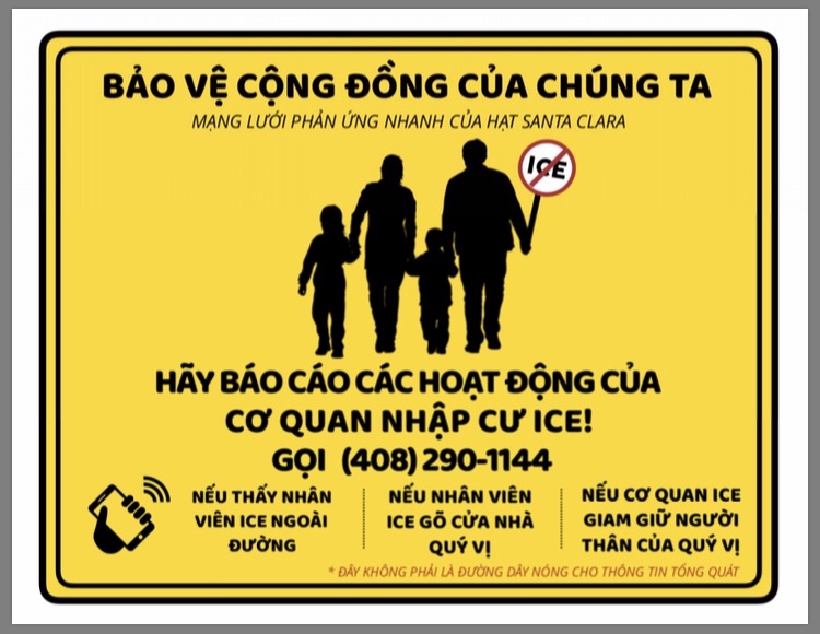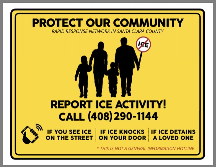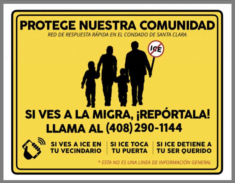 The Rapid Response Network (RRN) in Santa Clara County is a community defense project developed to protect immigrant families from deportation threats and to provide accompaniment support during and after a community member’s arrest or detention. Anyone can call the 24/7 hotline to report ICE activity in our county and receive help in real time!